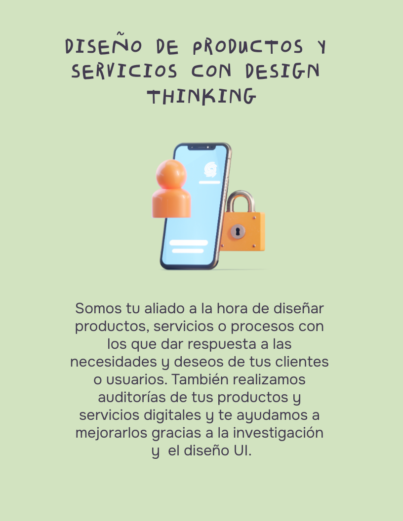 Si quieres una solución a medida, ponte en contacto con nosotros y buscaremos la forma de diseñarlo para ti. ¡Recuerda que la base del Design Thinking es poner al usuario en el centro! pero si lo que ahora quieres es conocer algunos de los servicios que mejor resultado han dado a nuestros clientes, te los mostramos a continuación.